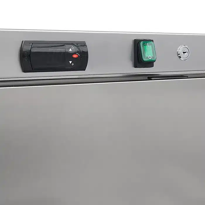 This professional freezer is equipped with an electronic temperature controller and a digital display. This allows for easy reading and setting of the temperature. It offers a wide temperature range for effective freezing of products. It is equipped with a fast freezing function, which allows the desired temperature to be reached quickly. Thanks to the protective insulation, the freezer works optimally in rooms with a constant ambient temperature. The refrigerant used is R290, which does not contain freon. It has been designed with two adjustable front feet and two rear wheels, which allow easy mobility if necessary.