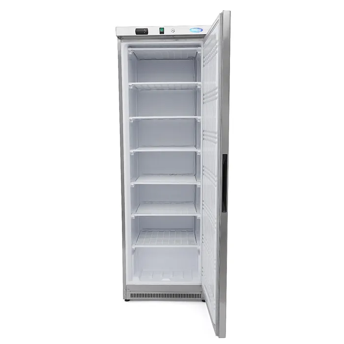 This professional freezer has a gross capacity of 400 l for storing frozen products. Thanks to its compact dimensions, this stainless steel freezer fits into almost any professional kitchen. Six shelves provide more than enough space to store what you need. The shelves are solid and come in a grid to improve ventilation. The door includes a lock for added convenience.