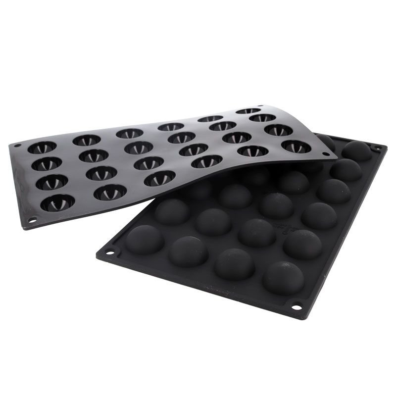 Ce moule professionnel en silicone permet de réaliser 24 mini demi-sphères de 3 cm de diamètre.