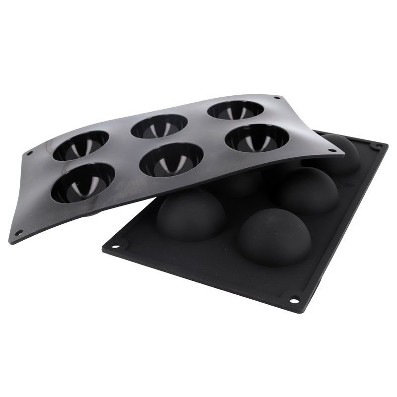 Ce moule professionnel en silicone permet de réaliser 6 demi-sphères de 6 cm de diamètre.